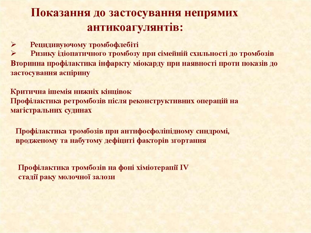 • Антитромботические препараты должны применяться длительно
