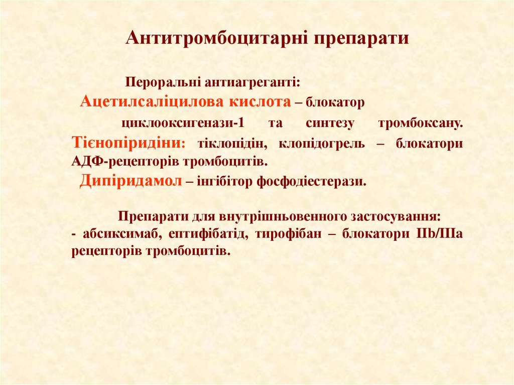 антиагрегантов(таких как клопидогрель, блокаторы