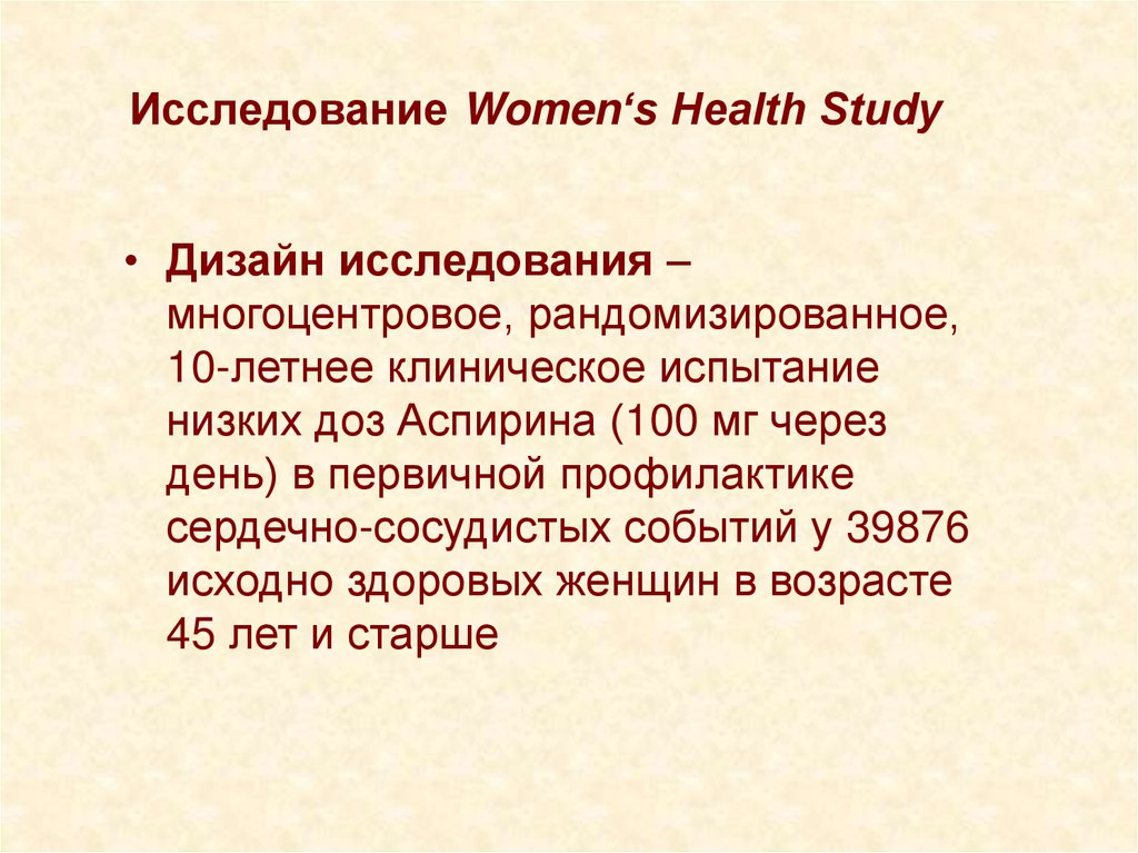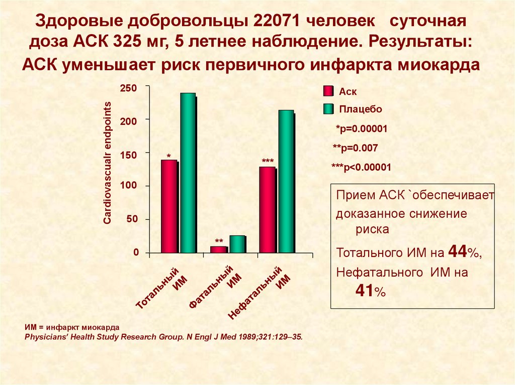 • Низкая доза АСК (75–150 мг в сутки) болееэффективна при длительном использовании, чем