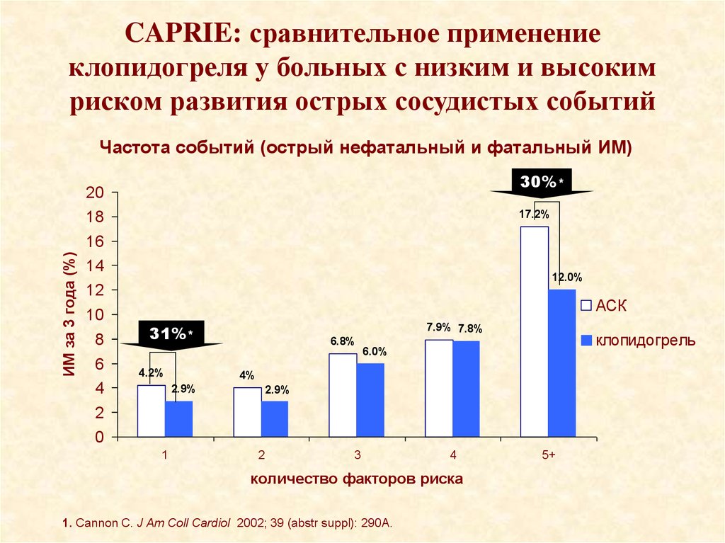1. Antithrombotic Trialists’ Collaboration. BMJ 2002; 324: 71–86. 2. Braunwald E et al. J Am Coll