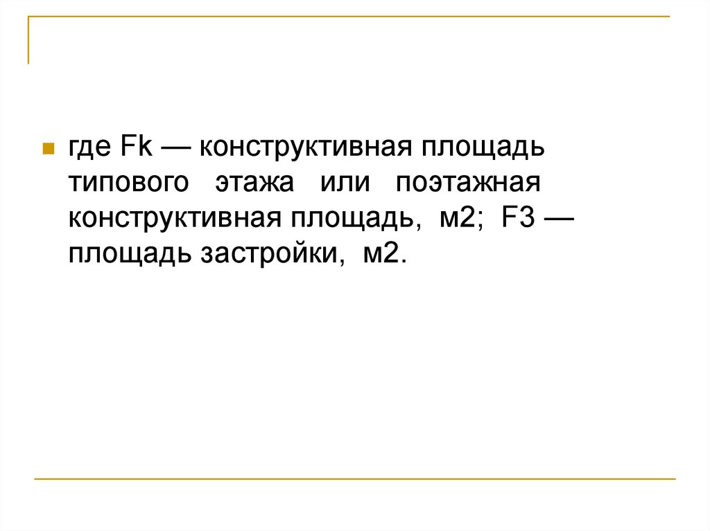 где Fk — конструктивная площадьтипового этажа или поэтажная
