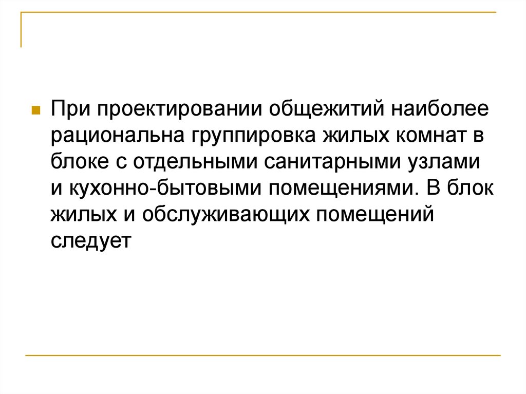 При проектировании общежитий наиболеерациональна группировка жилых комнат в