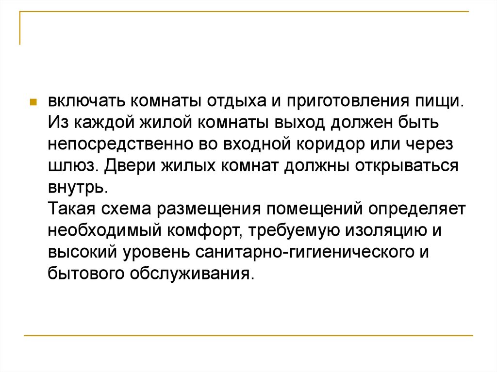 включать комнаты отдыха и приготовления пищи.Из каждой жилой комнаты выход должен быть