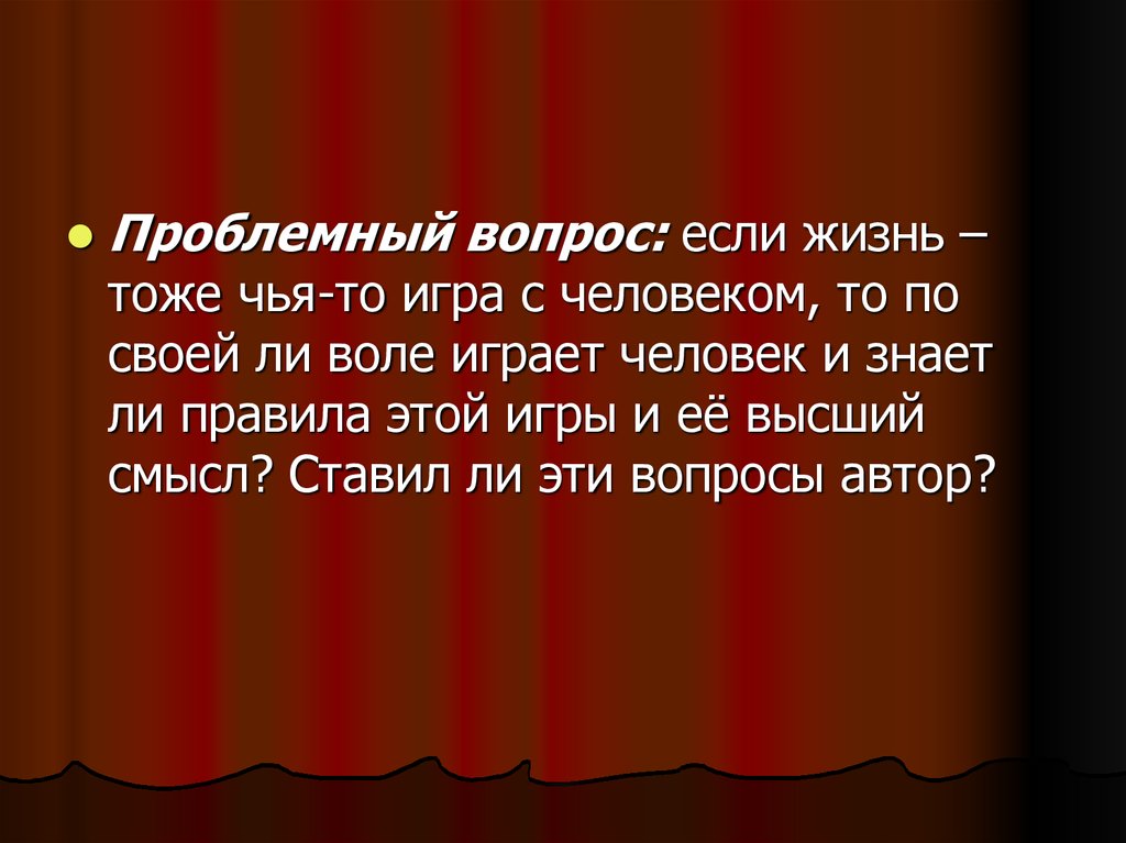 Проблемный вопрос: если жизнь –тоже чья-то игра с человеком, то по