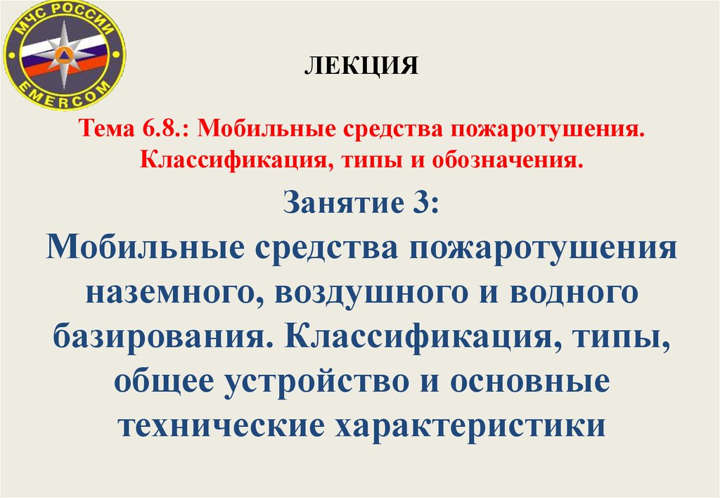 ЛЕКЦИЯТема 6.8.: Мобильные средства пожаротушения.