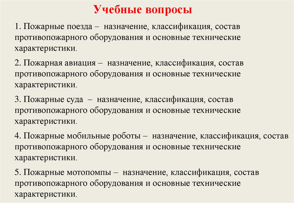 Учебные вопросы1. Пожарные поезда – назначение, классификация, состав