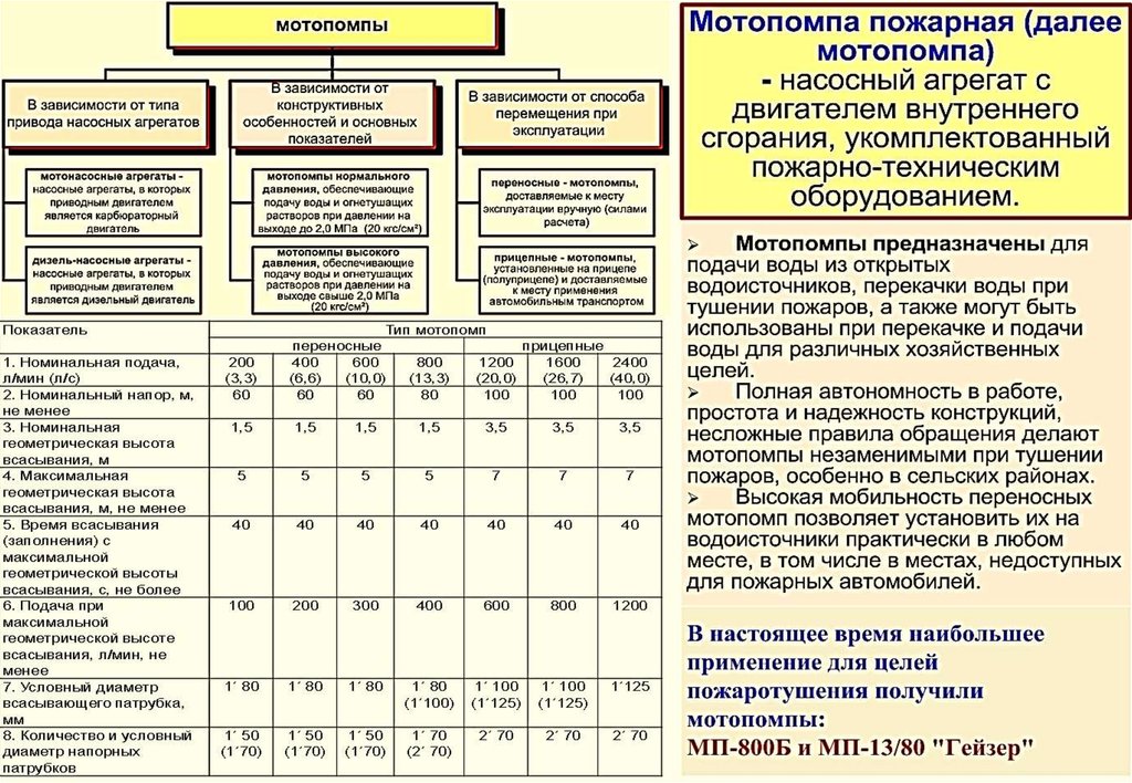 5. Пожарные мотопомпы – назначение, классификация, состав