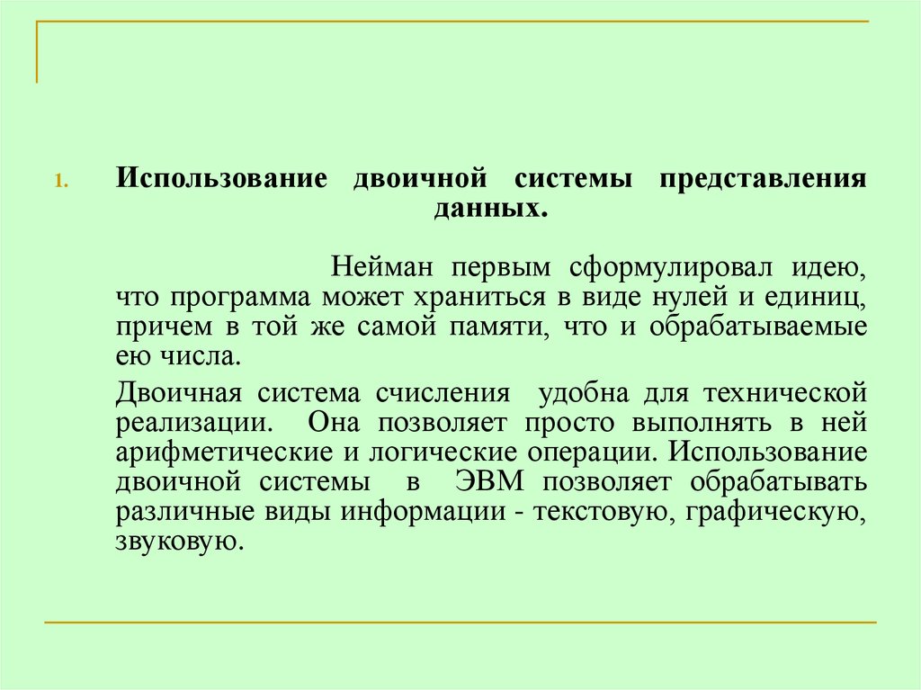 1.Использование двоичной системы представления