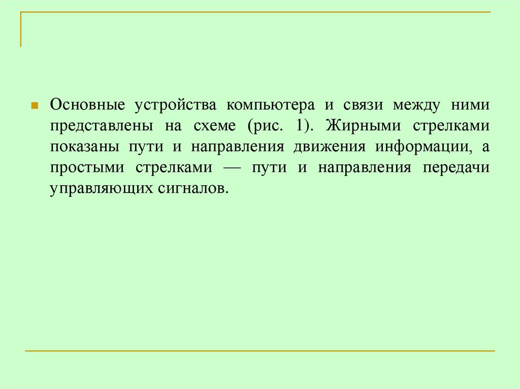 Основные устройства компьютера и связи между нимипредставлены на схеме (рис. 1). Жирными стрелками