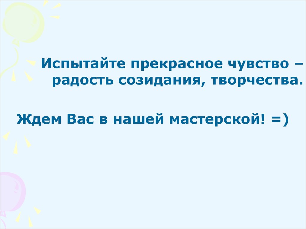 Испытайте прекрасное чувство –радость созидания, творчества.