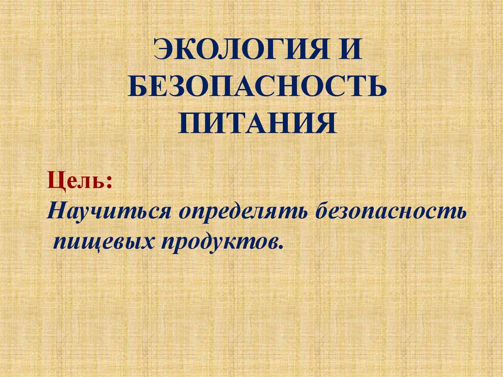 ЭКОЛОГИЯ ИБЕЗОПАСНОСТЬ