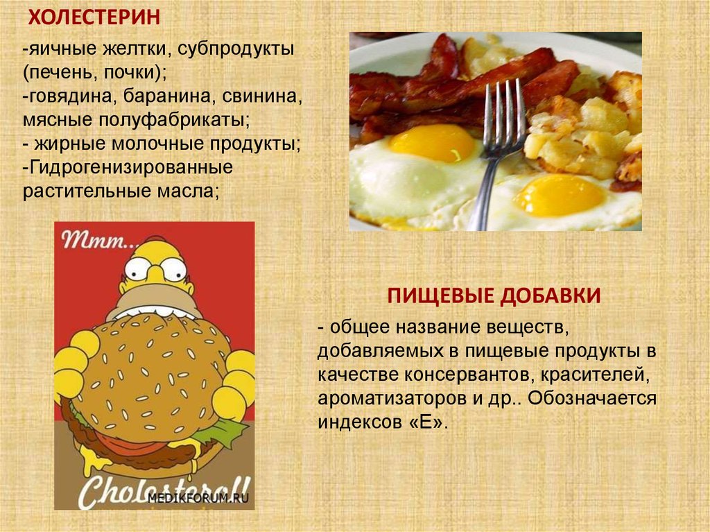 ХОЛЕСТЕРИН-яичные желтки, субпродукты