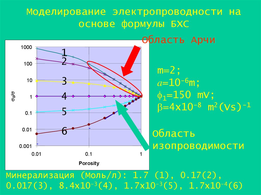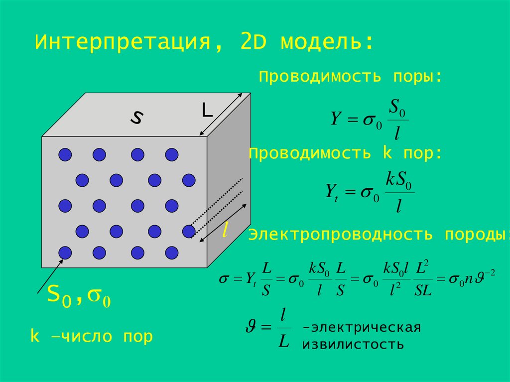 Интерпретация, 2D модель:Проводимость поры: