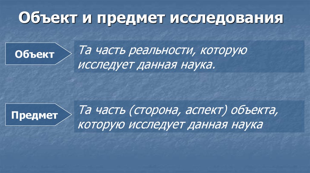 Объект и предмет исследованияОбъект