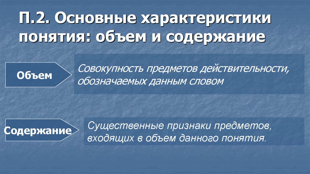 П.2. Основные характеристикипонятия: объем и содержание