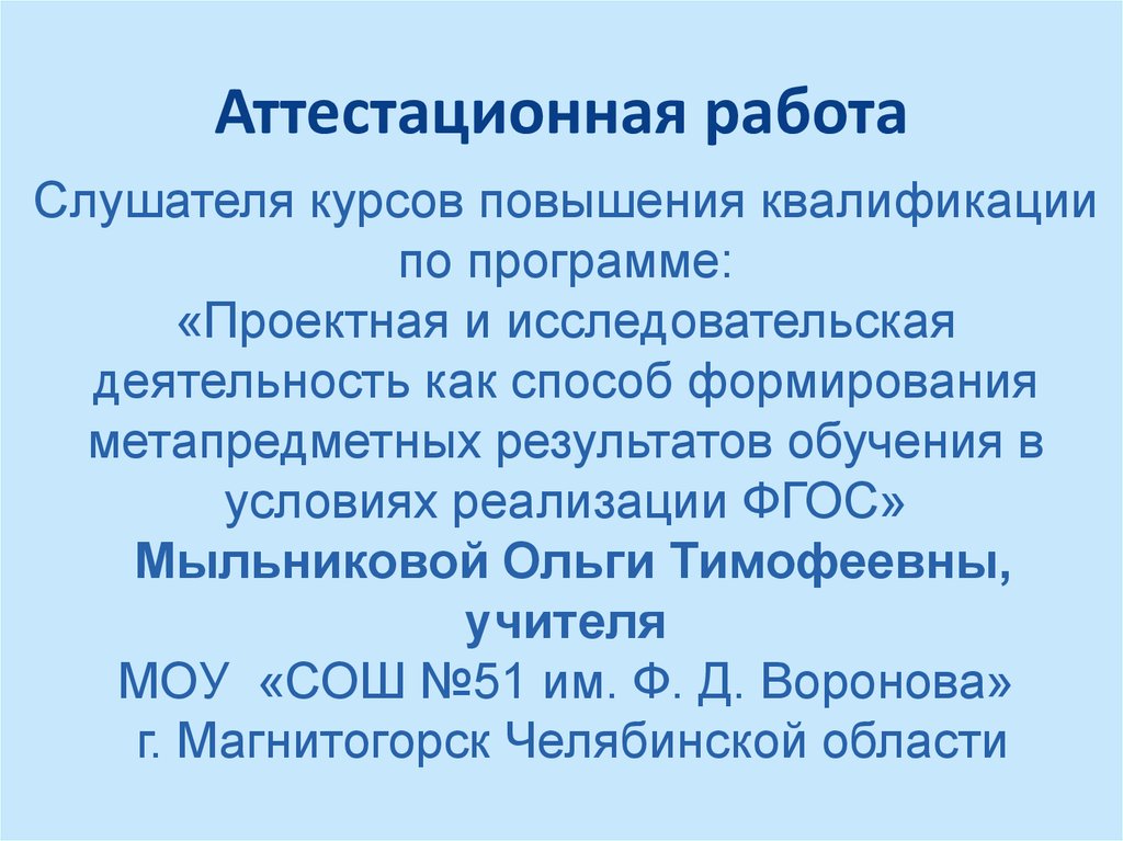 МОУ «СОШ №51 им. Ф. Д. Воронова»