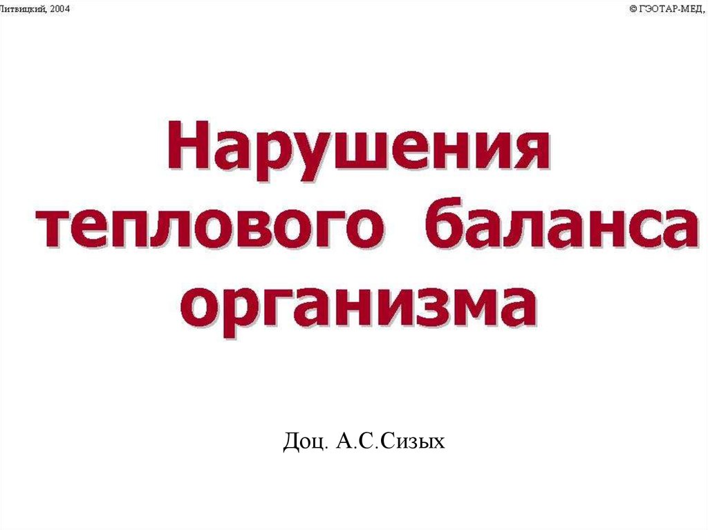 Лекции по патофизиологии.Типовые нарушения теплового баланса