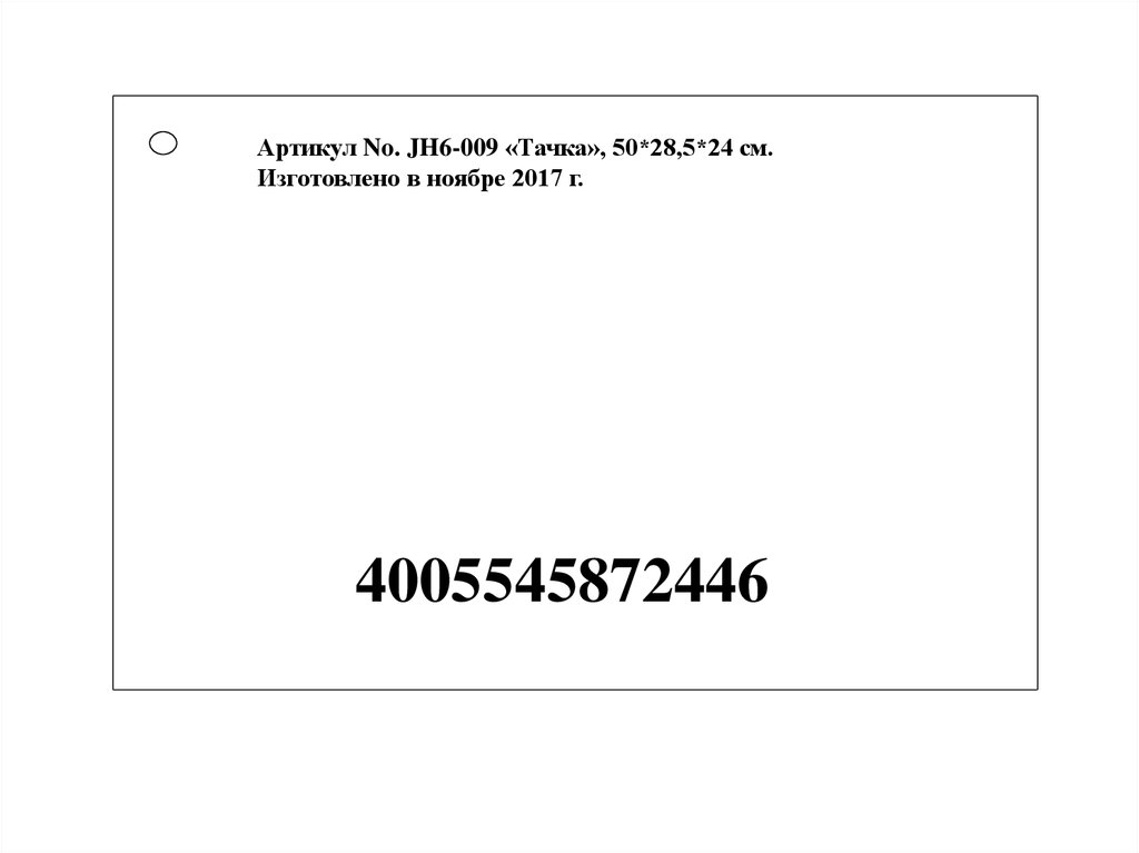 Артикул No. JH6-009 «Тачка», 50*28,5*24 см.Изготовлено в ноябре 2017 г.