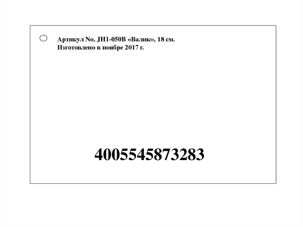 Артикул No. JH1-050B «Валик», 18 см.Изготовлено в ноябре 2017 г.