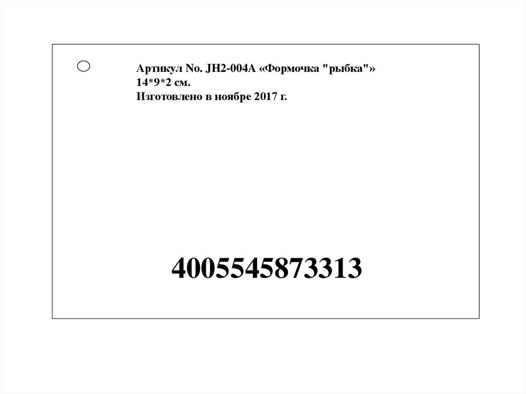 Артикул No. JH2-004A «Формочка "рыбка"»14*9*2 см.