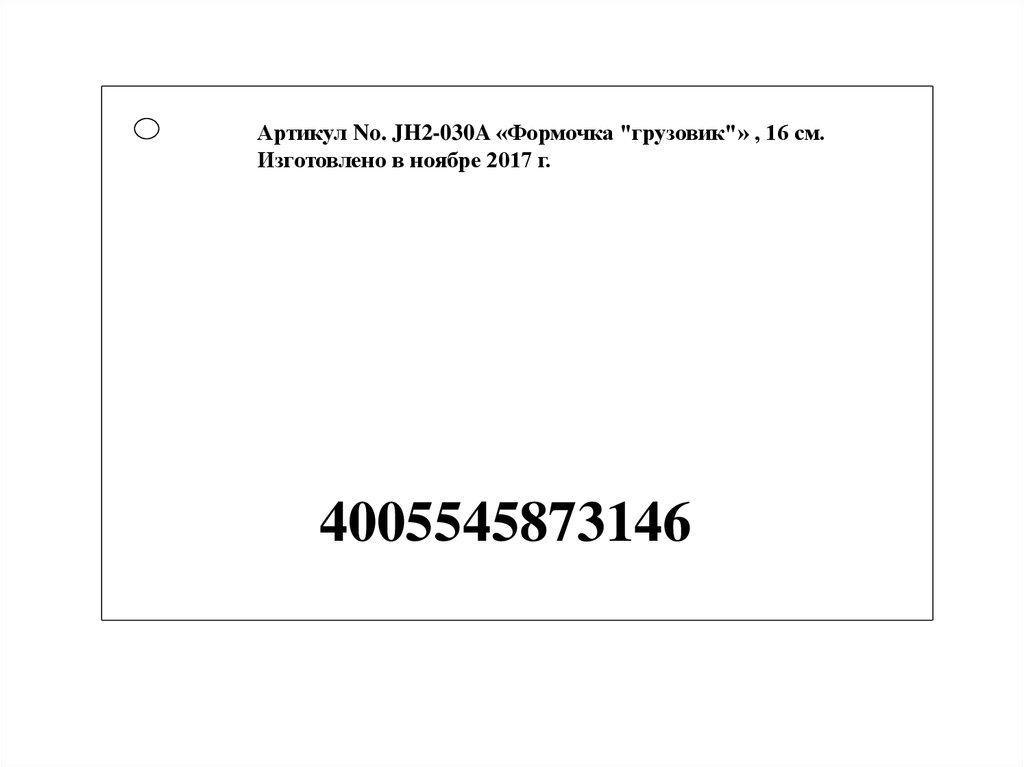 Артикул No. JH2-030A «Формочка "грузовик"» , 16 см.Изготовлено в ноябре 2017 г.