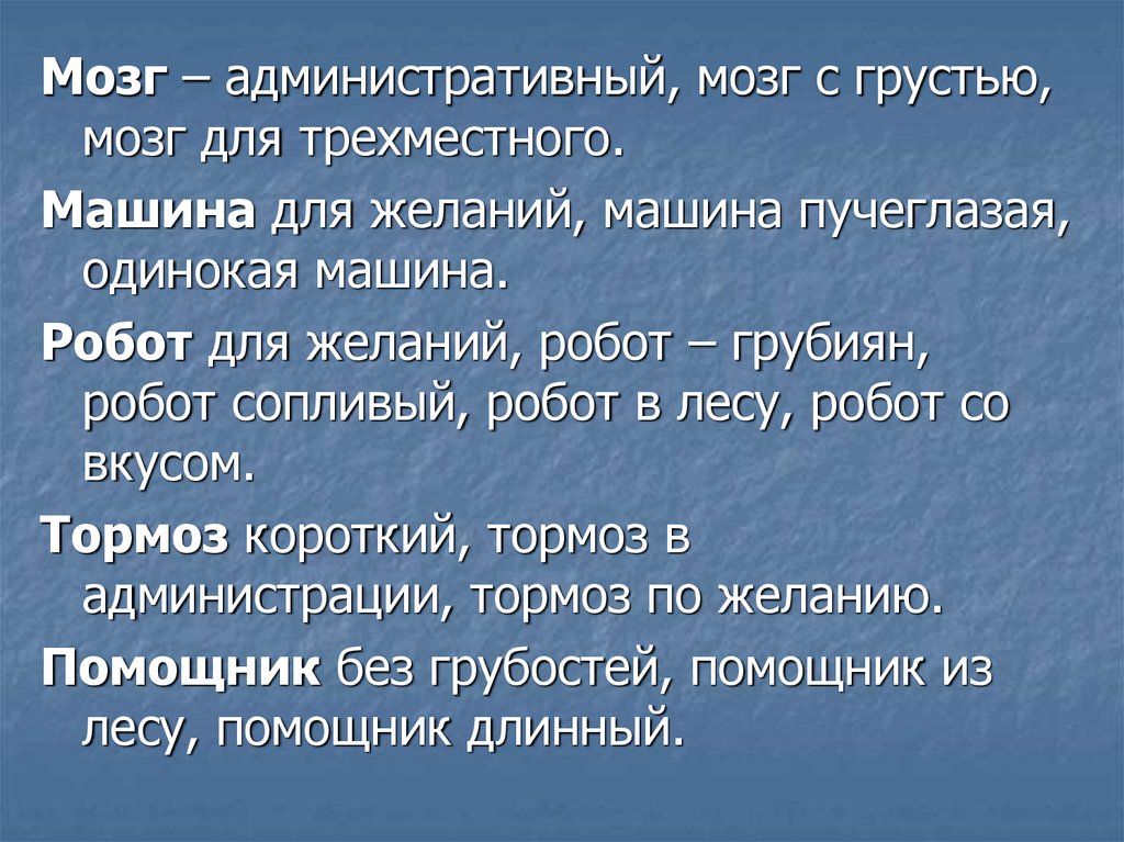 Мозг – административный, мозг с грустью,мозг для трехместного.