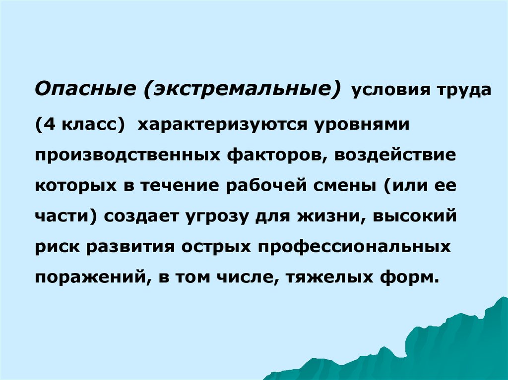 Опасные (экстремальные) условия труда(4 класс) характеризуются уровнями