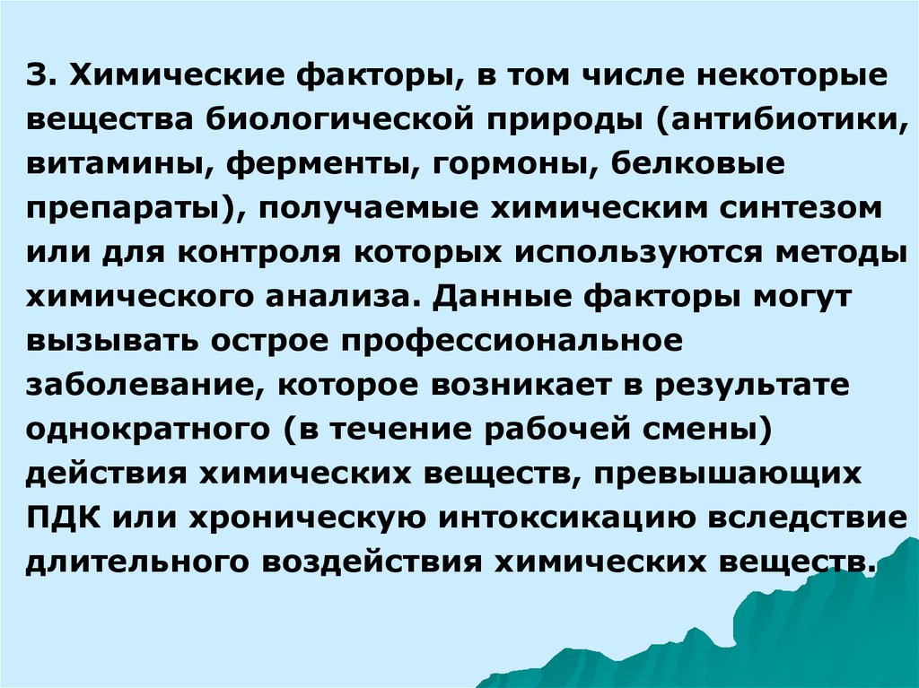 3. Химические факторы, в том числе некоторыевещества биологической природы (антибиотики,