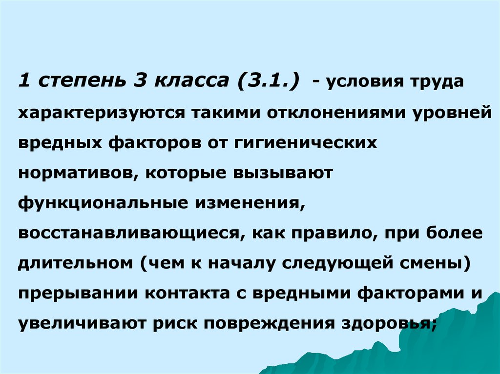 1 степень 3 класса (3.1.) - условия трудахарактеризуются такими отклонениями уровней