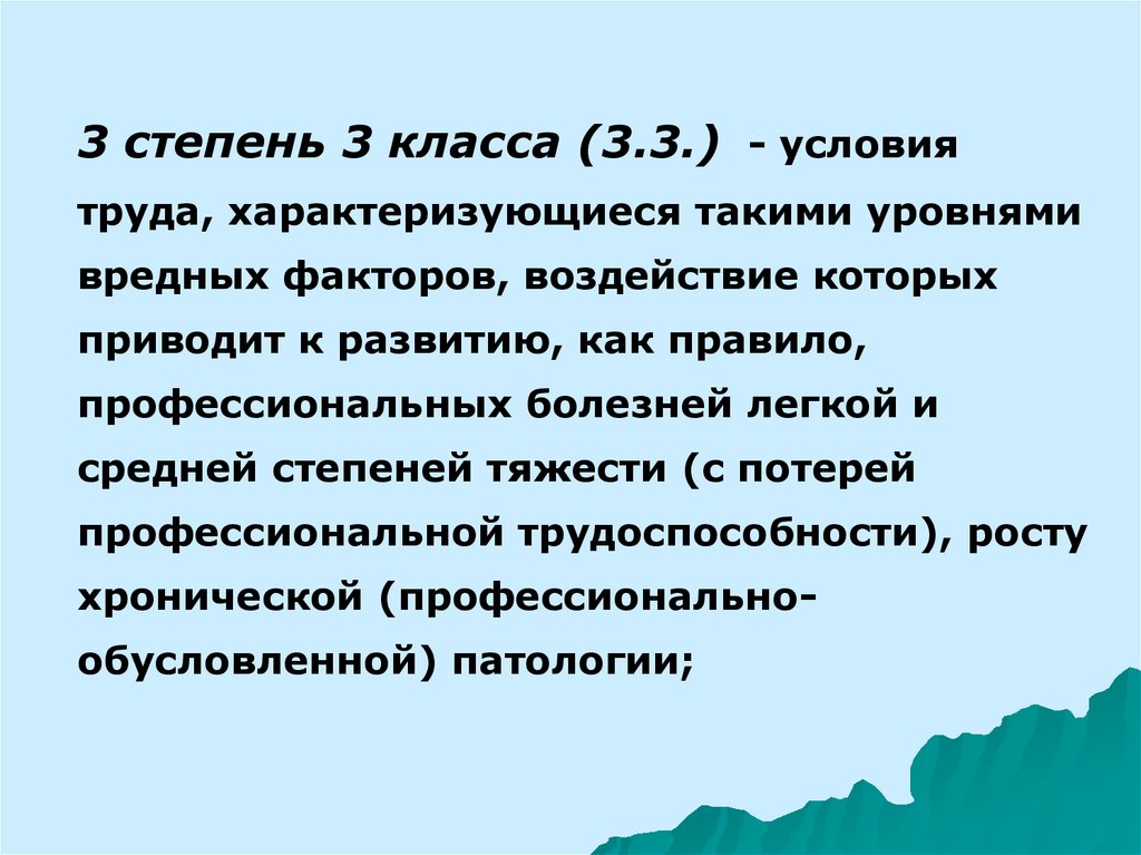 3 степень 3 класса (3.3.) - условиятруда, характеризующиеся такими уровнями