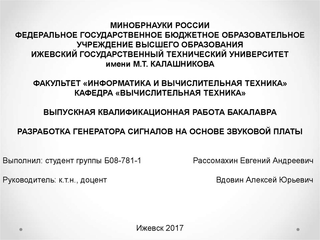 ВЫПУСКНАЯ КВАЛИФИКАЦИОННАЯ РАБОТА БАКАЛАВРА