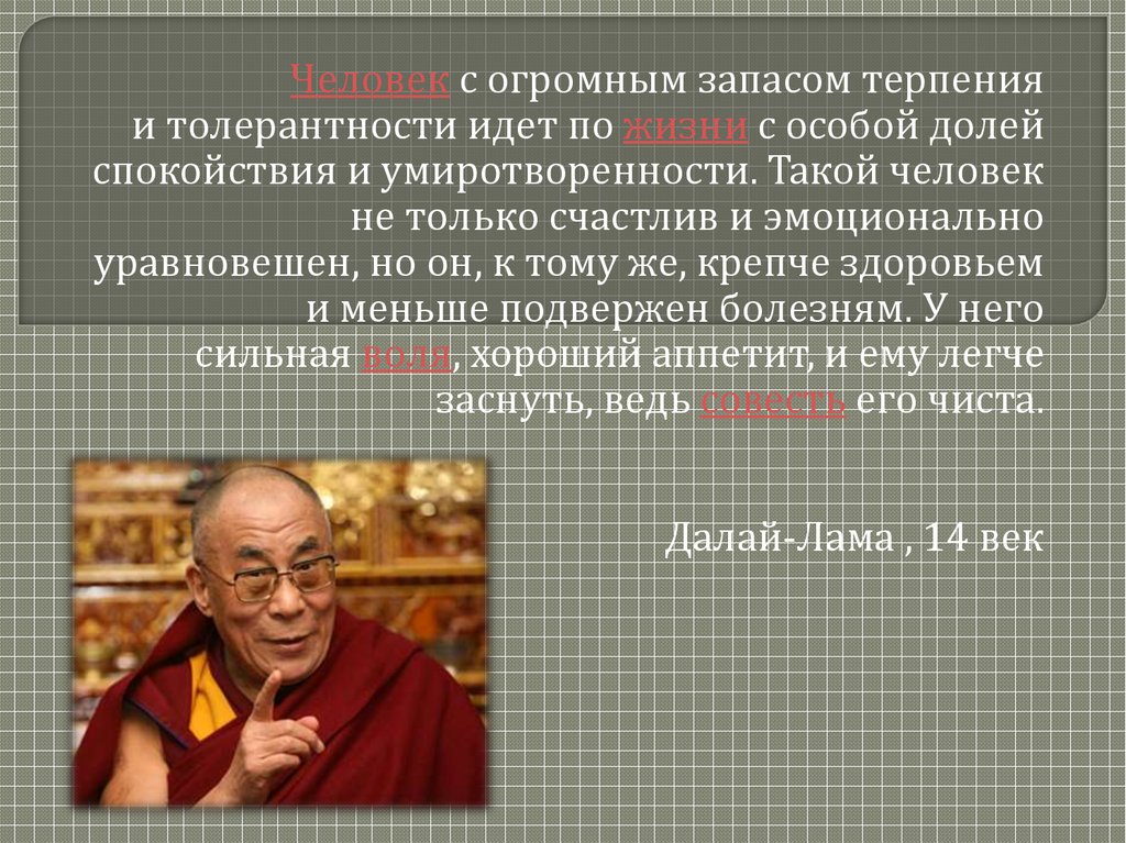 Человек с огромным запасом терпенияи толерантности идет по жизни с особой долей