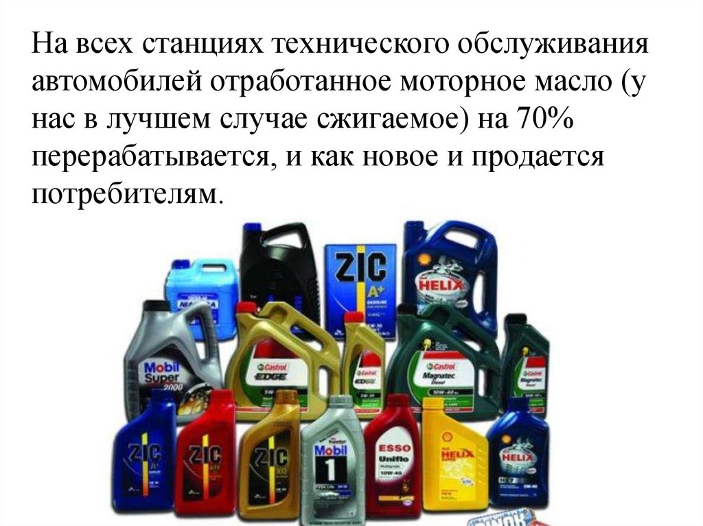 На всех станциях технического обслуживанияавтомобилей отработанное моторное масло (у