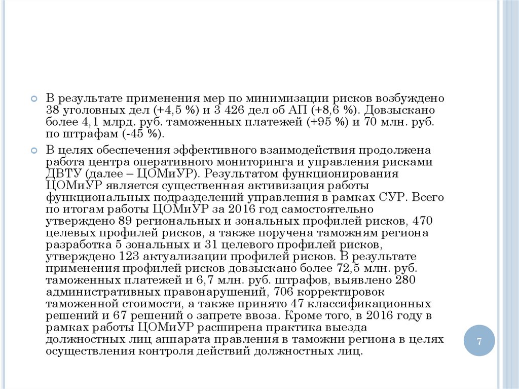деятельности Владивостокской таможни. В соответствии с требованиями законодательства
