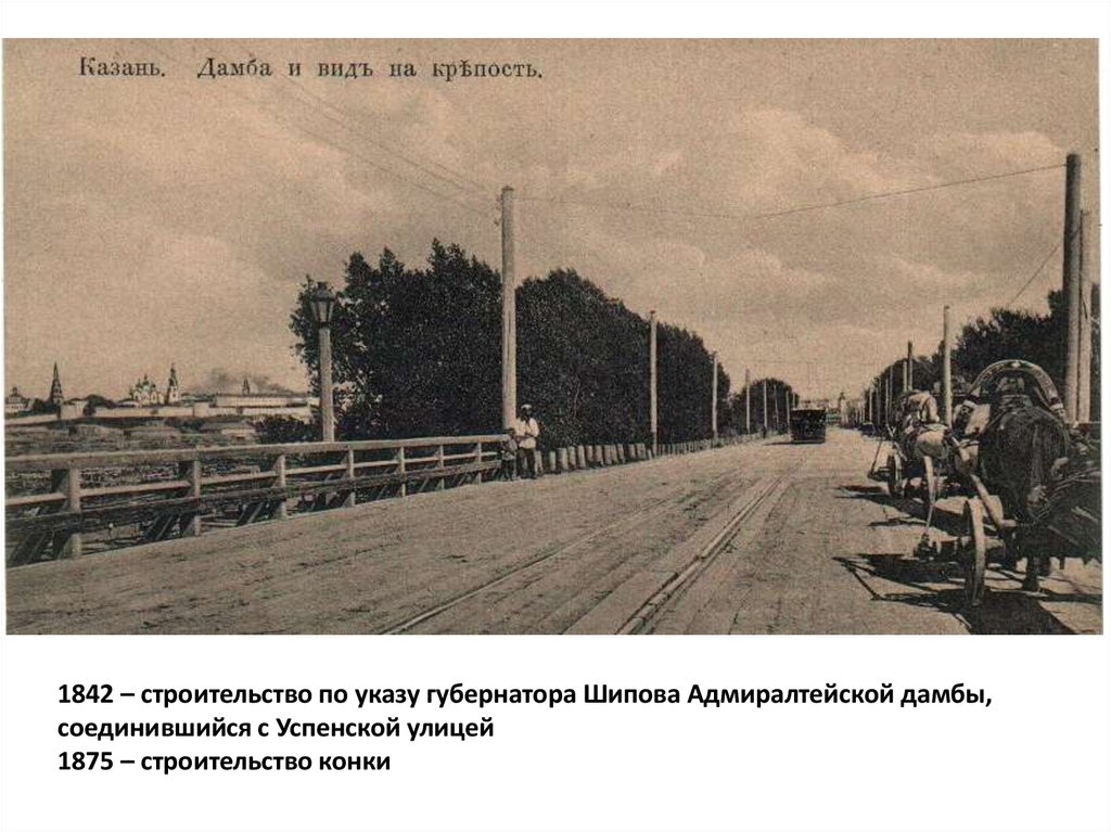 1842 – строительство по указу губернатора Шипова Адмиралтейской дамбы,соединившийся с Успенской улицей
