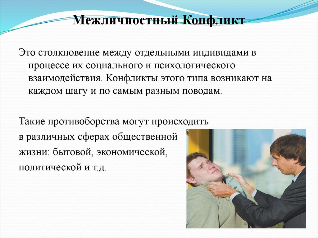 Межличностный КонфликтЭто столкновение между отдельными индивидами в