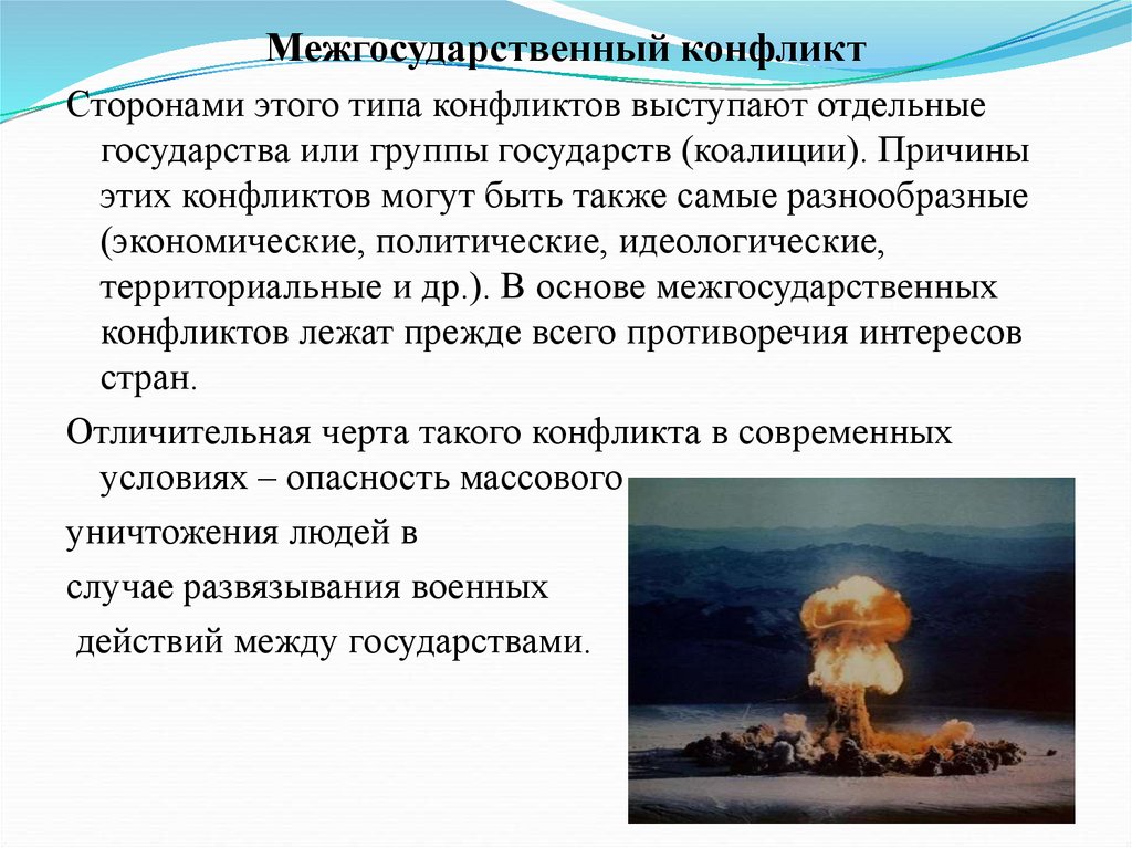 Межгосударственный конфликтСторонами этого типа конфликтов выступают отдельные