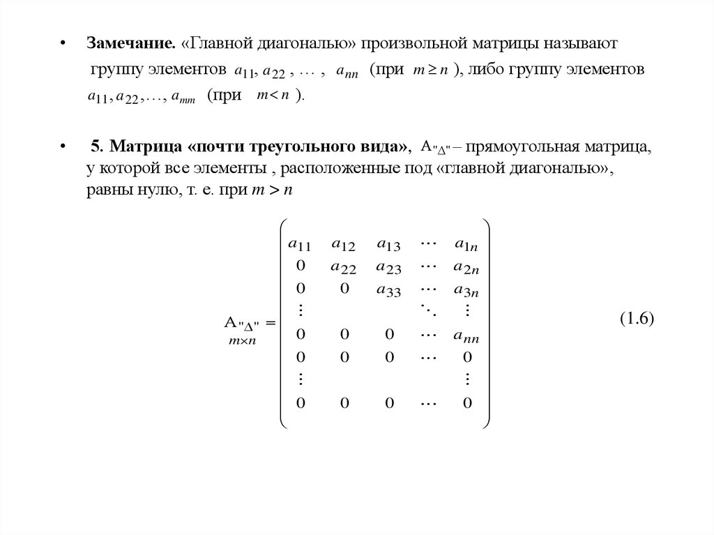 Замечание. «Главной диагональю» произвольной матрицы называют