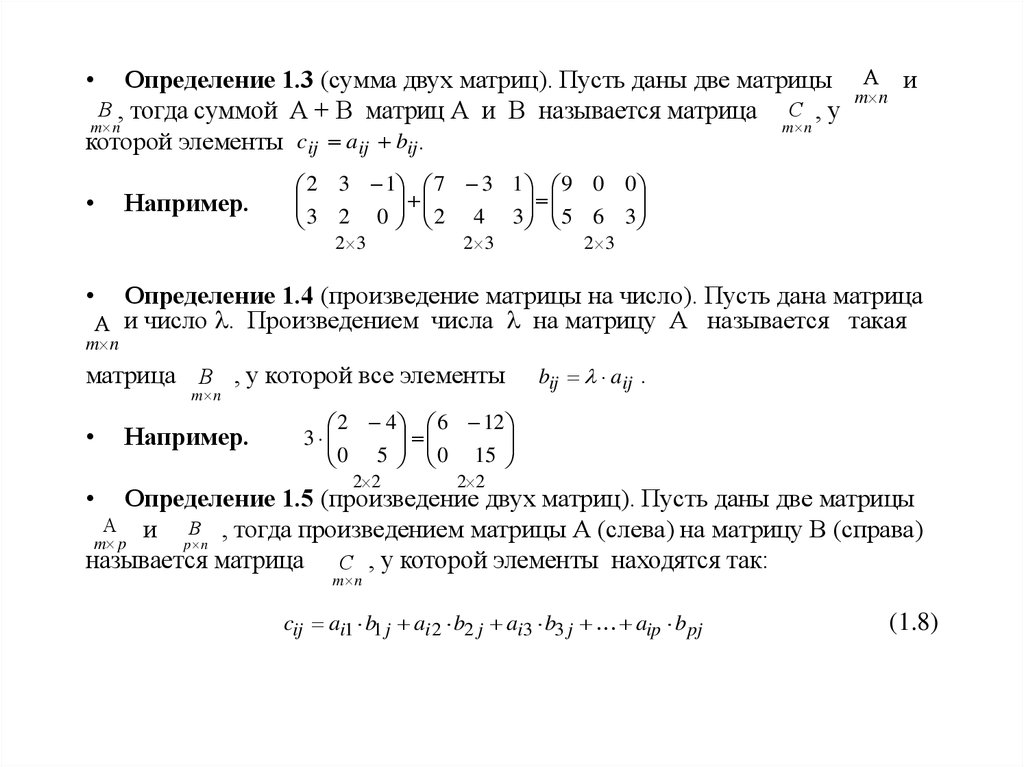 Определение 1.5 (произведение двух матриц). Пусть даны две матрицы