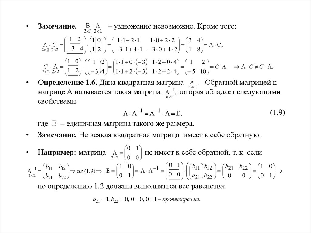 Замечание. Не всякая квадратная матрица имеет к себе обратную .