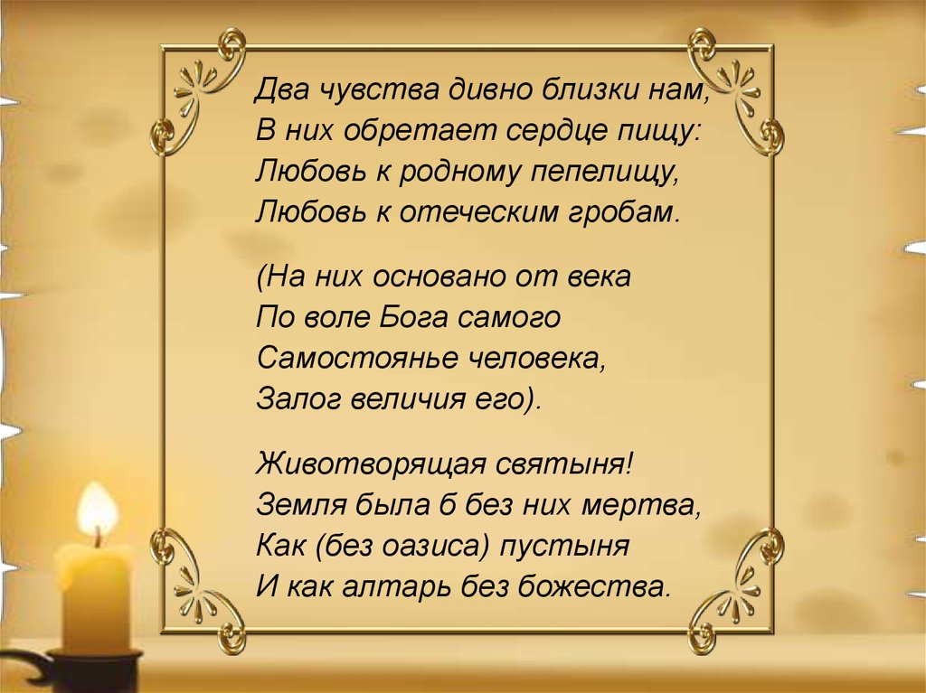 Два чувства дивно близки нам,В них обретает сердце пищу: