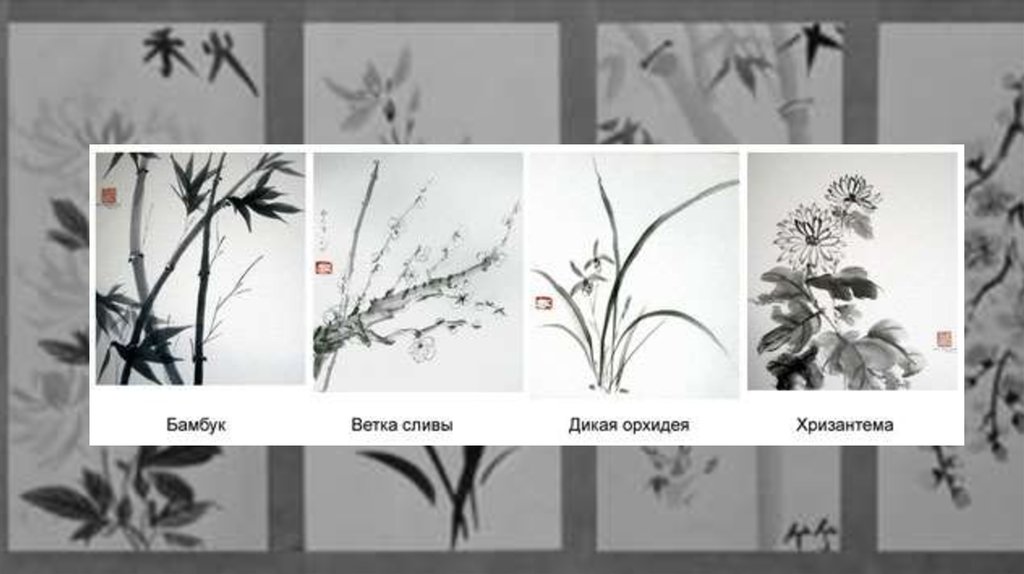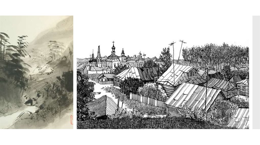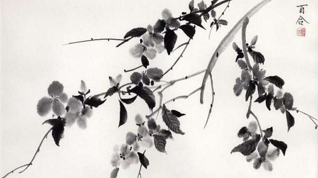 Изобразить пейзаж используя технику«суми-е»