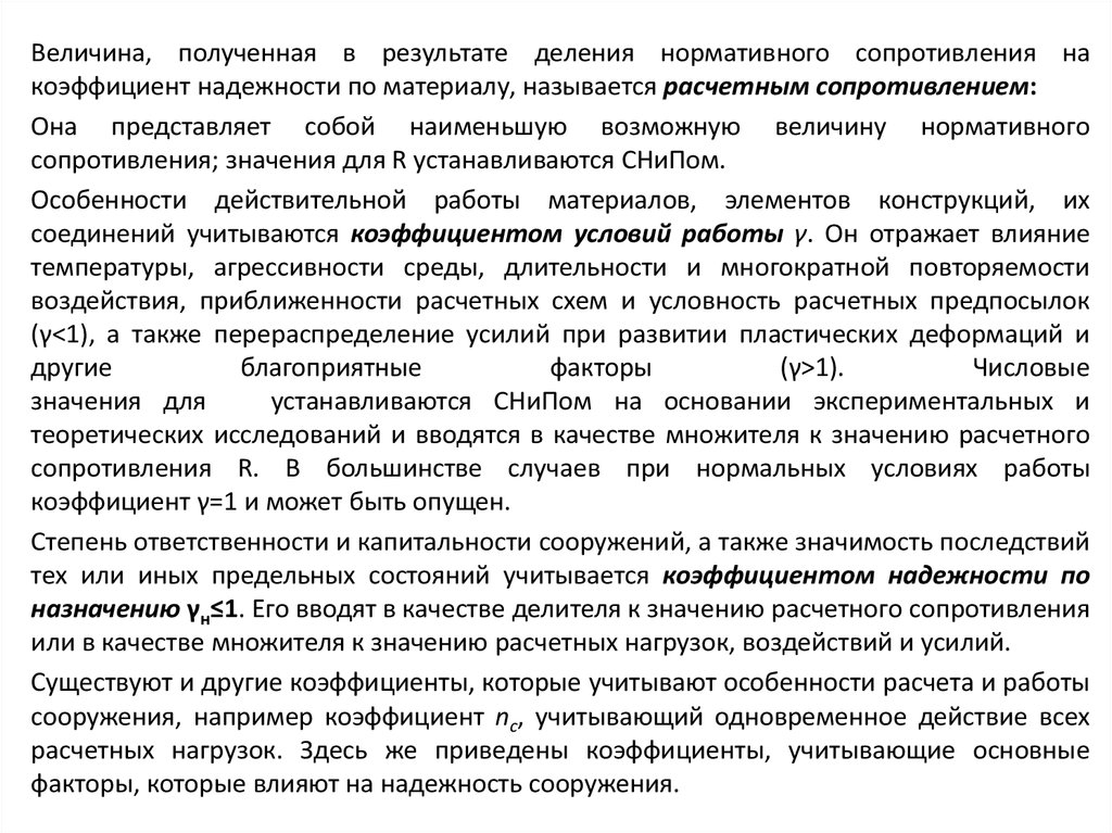 назначению γн≤1. Его вводят в качестве делителя к значению расчетного сопротивления