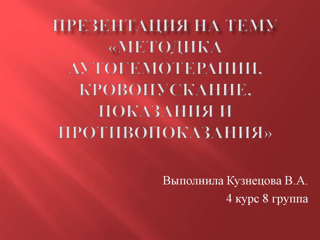 1. Презентация на тему «Методика аутогемотерапии, кровопускание, показания и противопоказания»