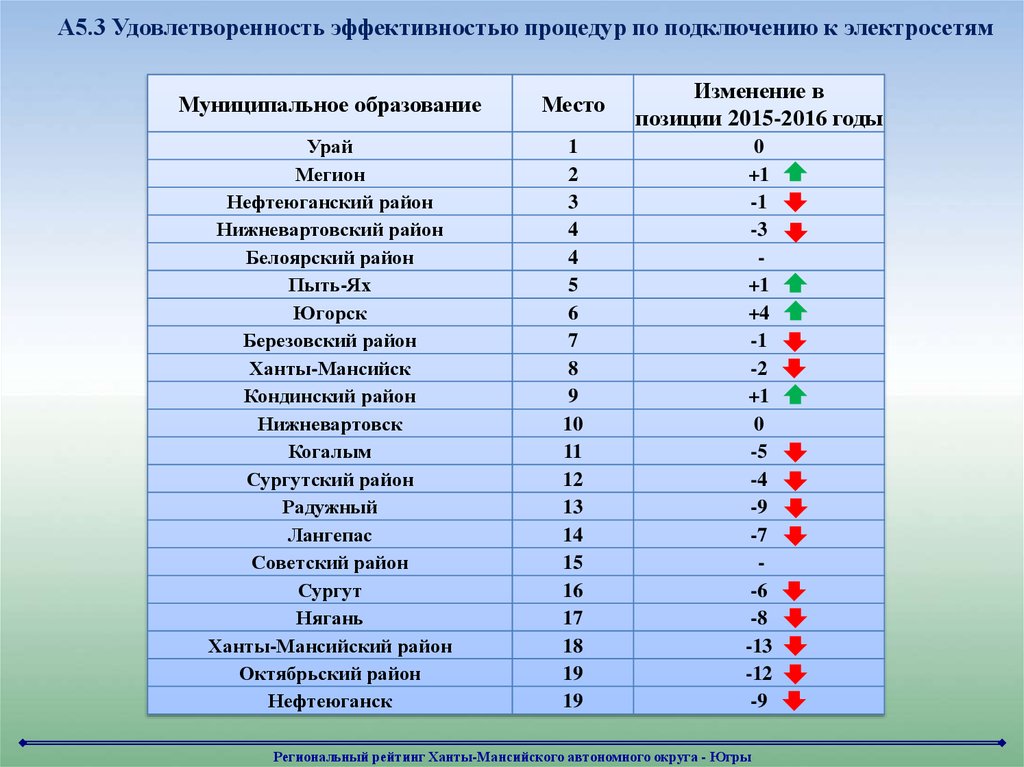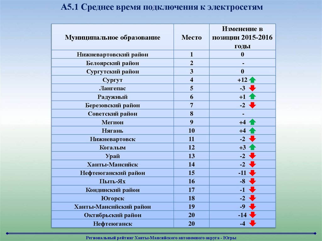 Региональный рейтинг в сфере подключения к электросетямМуниципальное образование