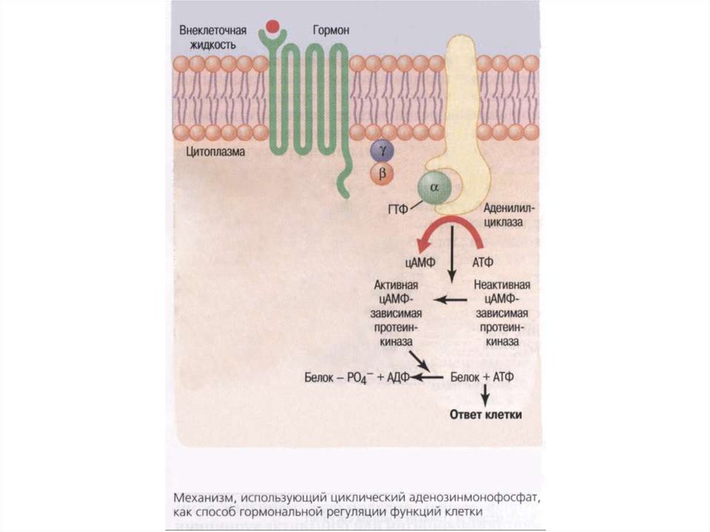 АТФ с образованием цАМФ. цАМФ вызывает в клетке