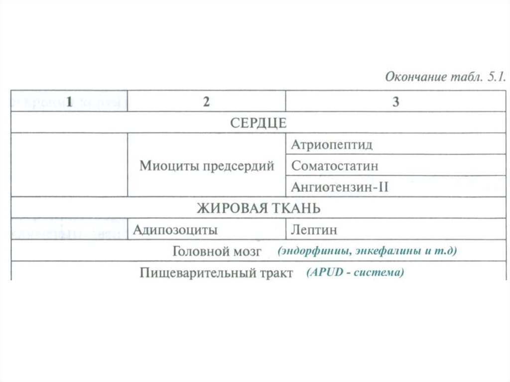 - сердце (миоциты правого предсердия - атриопептид, соматостатин, ангиотензин);
