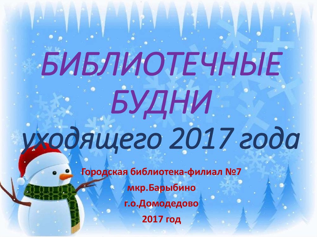 БИБЛИОТЕЧНЫЕ БУДНИ уходящего 2017 года