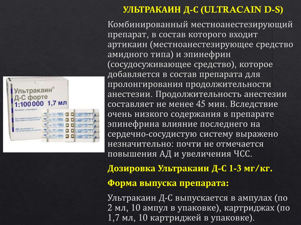 Виды анестезии, концентрация раствора (%)