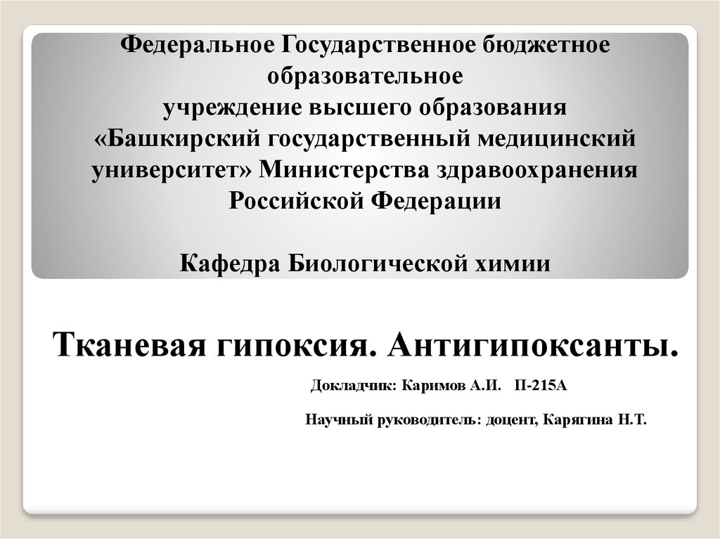 1. Федеральное Государственное бюджетное образовательное учреждение высшего образования «Башкирский государственный медицинский